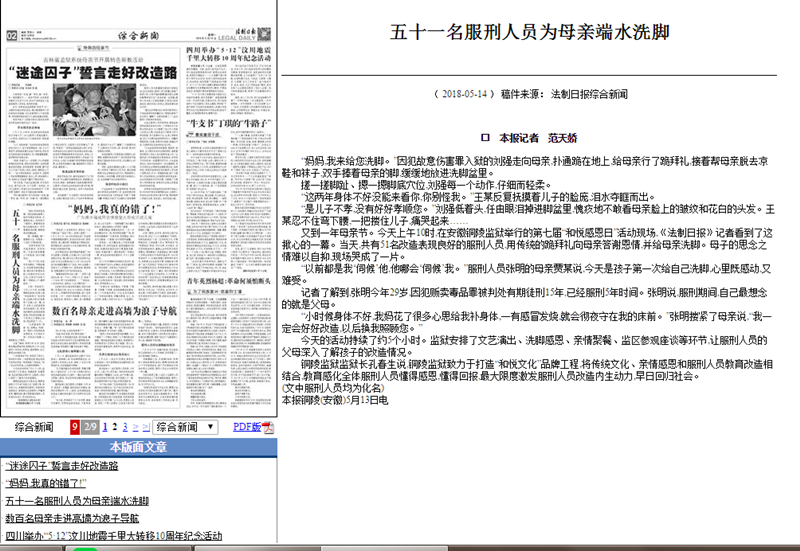 《法制日报》五十一名服刑人员为母亲端水洗脚
