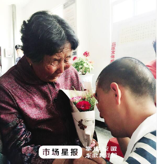 “孩子,妈妈希望你能安心改造,振作精神,重新做人,早日出狱,妈妈在家等你……”李秀兰语重心长地说。许某红着眼睛,和其他狱友一起,将一束绽放的康乃馨双手捧给自己的母亲。
